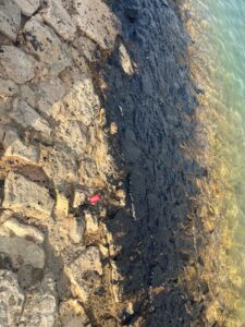 تعرضت منطقه ممشى بورتوفيق الترفيهي والسياحي المفتوح للمواطنين بالسويس للتلوث البحري بشكل واضح على سطح المياه وامتدت آثار التلوث الى الكساء الحجري لجوانب القناه مما يعكس وجود مواد بترولية متراكمة تشكل خطرا مباشرا على البيئة البحرية.