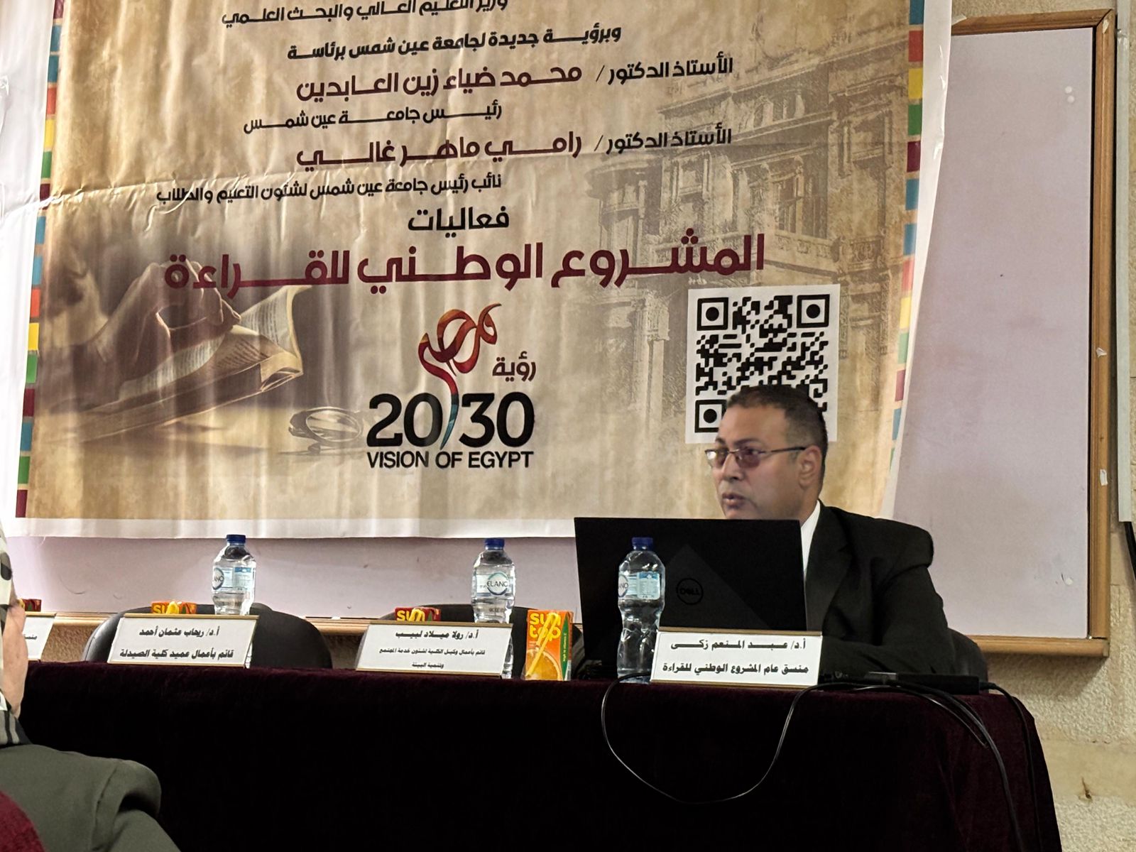 في إطار خطة جامعة عين شمس لدعم وتنفيذ المشروع الوطني للقراءة ضمن رؤية مصر 2030، والتي تتضمن تنظيم ندوات تعريفية لنشر الوعي بالمشروع بين طلاب الجامعة، تم عقد عدد من الندوات التعريفية داخل الكليات، وذلك تحت رعاية الأستاذ الدكتور محمد ضياء زين العابدين رئيس الجامعة، والأستاذ الدكتور رامي ماهر غالي نائب رئيس الجامعة لشؤون التعليم والطلاب .