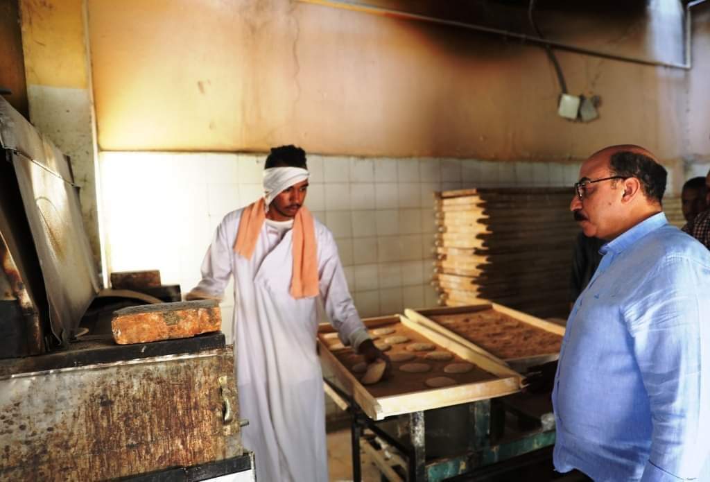أثناء تفقده لأحد المخابز البلدية .. محافظ أسوان يوجه للإعلان عن أسعار الخبز السياحى والفينو