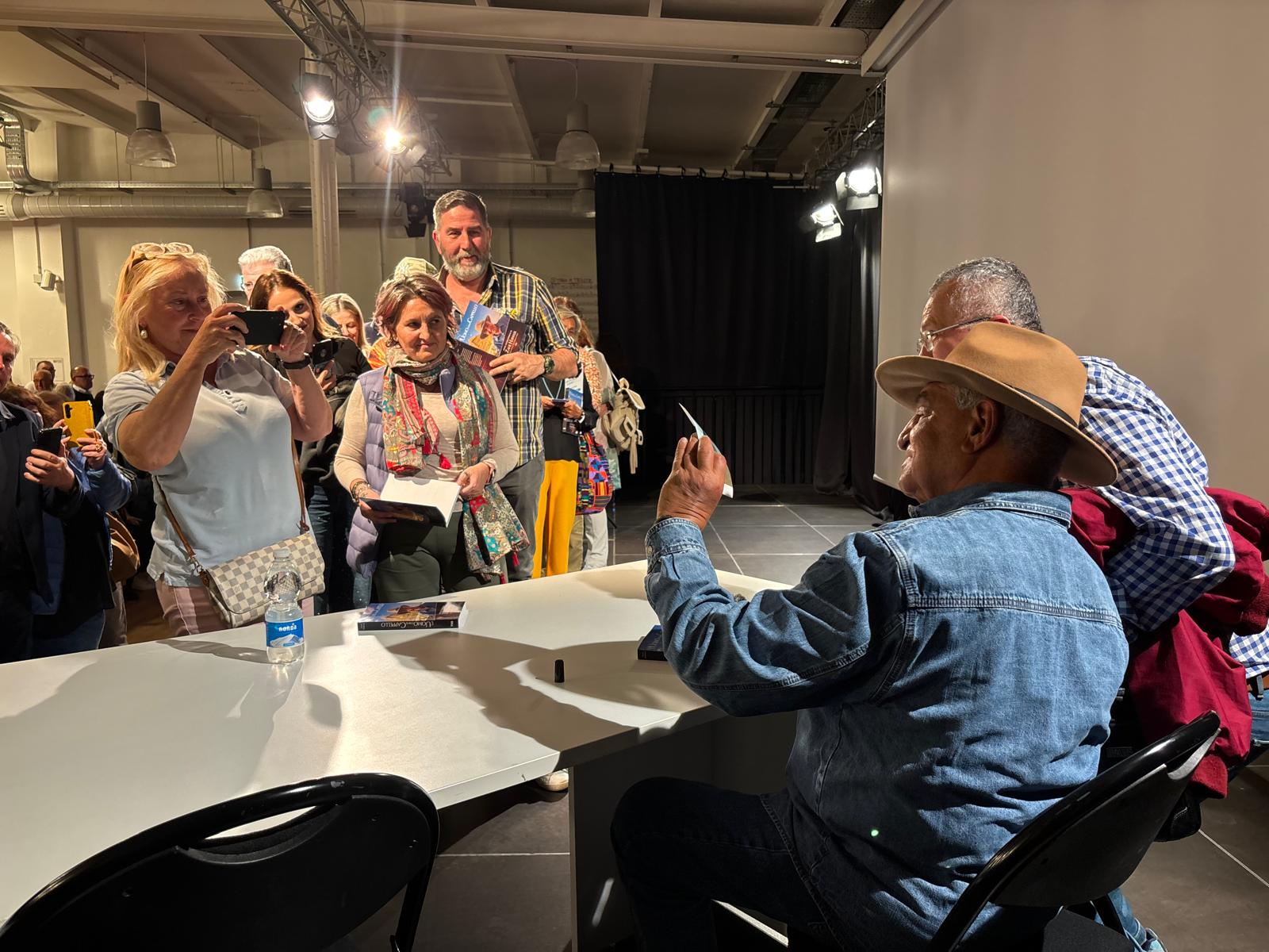 وعقب انتهاء المحاضرة، تحول المكان إلى مظاهرة في حب الحضارة المصرية، حيث استمر الدكتور حواس لمدة ساعة كاملة في توقيع كتابه الصادر باللغة الإيطالية “الرجل ذو القبعة” (L’uomo con il cappello)، وسط إقبال تاريخي من الجمهور الذي حرص على التقاط الصور التذكارية مع صائد المومياوات، قبل أن يختتم الفعالية متوجهاً اليوم إلى مدينة “ميلانو” لمواصلة رحلته التي تشمل عشر مدن إيطالية للترويج للسياحة والآثار المصرية .