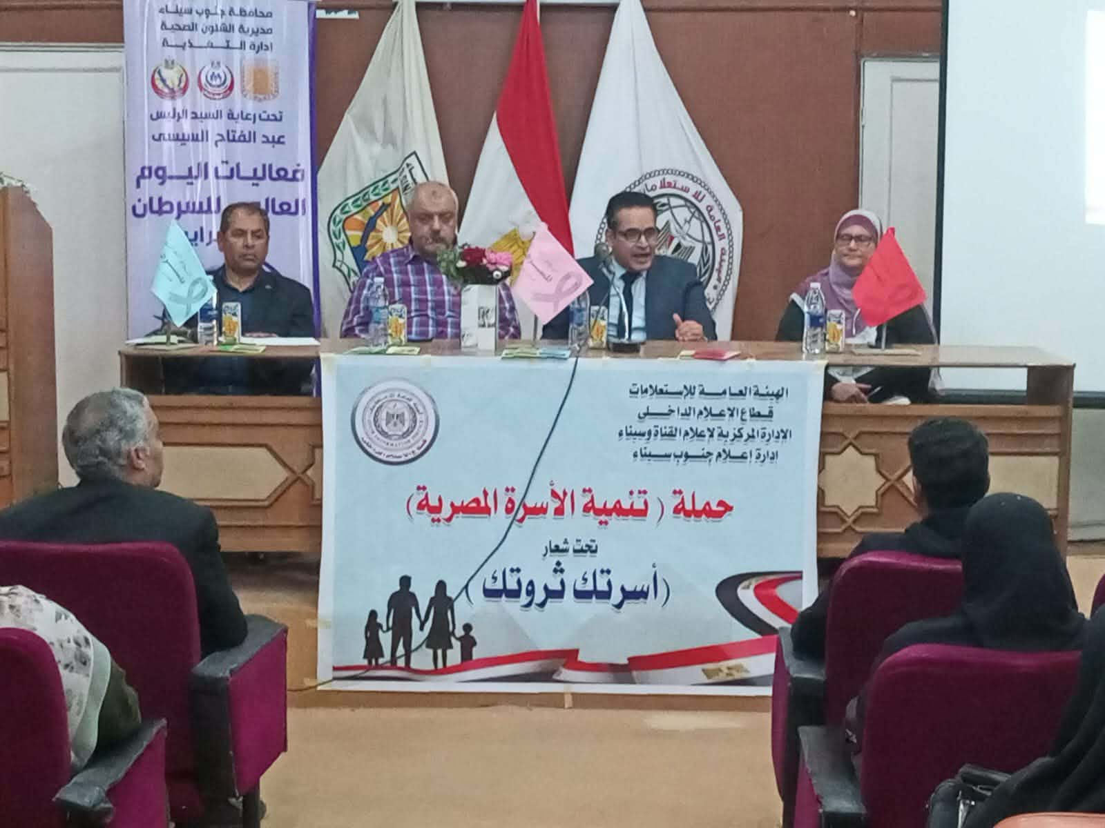 إعلام جنوب سيناء يختتم فعاليات اليوم العالمي للسرطان (ندوة قافلة طبية معرض مشغولات يدوية بدوية)