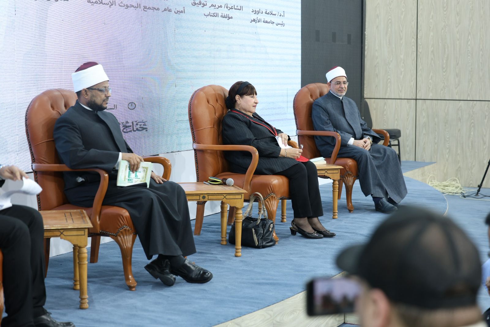 نظم جناح الأزهر الشريف بمعرض القاهرة الدولي للكتاب، في دورته الـ (٥٧)، اليوم الجمعة، ندوة فكرية بعنوان قراءة في كتاب «إمام الإنسانية»، لمناقشة كتاب الكاتبة والشاعرة المسيحية مريم توفيق، وذلك بحضور نخبة من القيادات العلمية والفكرية بالأزهر الشريف، على رأسهم فضيلة الأستاذ الدكتور سلامة داود، رئيس جامعة الأزهر، وفضيلة الأستاذ الدكتور محمد الجندي، الأمين العام لمجمع البحوث الإسلامية، وأدار الندوة الدكتور محمد بحراوي، عضو هيئة التدريس بكلية الإعلام جامعة الأزهر، وذلك ضمن فعاليات جناح الأزهر الشريف الهادفة إلى دعم الكلمة الجادة، وتشجيع القراءة والإبداع الذي يعزز القيم الإنسانية، ويؤكد دور الأزهر في نشر الفكر الوسطي المستنير، وترسيخ ثقافة الحوار، وبناء الوعي من خلال الكتاب والفكر الرصين.