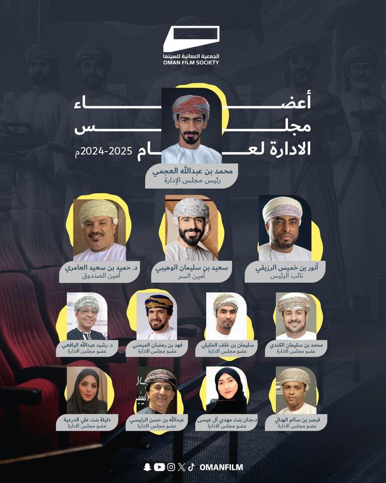 عقد بمقر الجمعية العُمانية للسينما الاجتماع الأول لمجلس إدارة الجمعية العُمانية للسينما المنتخب للفترة ٢٠٢٤-٢٠٢٥م عقب فوز ١٢ عضو بإنتخابات الجمعية العمومية بعد منافسة بين ١٨ عضو تقدم لإدارة الجمعية للفترة المقبلة. وقد تم تشكيل اعضاء مجلس إدارة الجمعية العمانية للسينما :
