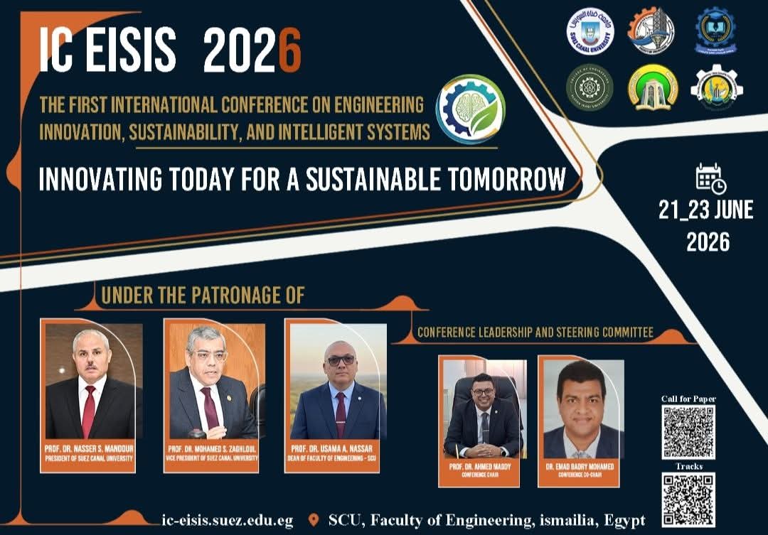 انطلاق المؤتمر الدولي الأول للابتكار الهندسي والاستدامة والأنظمة الذكية IC EISIS 2026 بجامعة قناة السويس في 21 يونيو 2026….