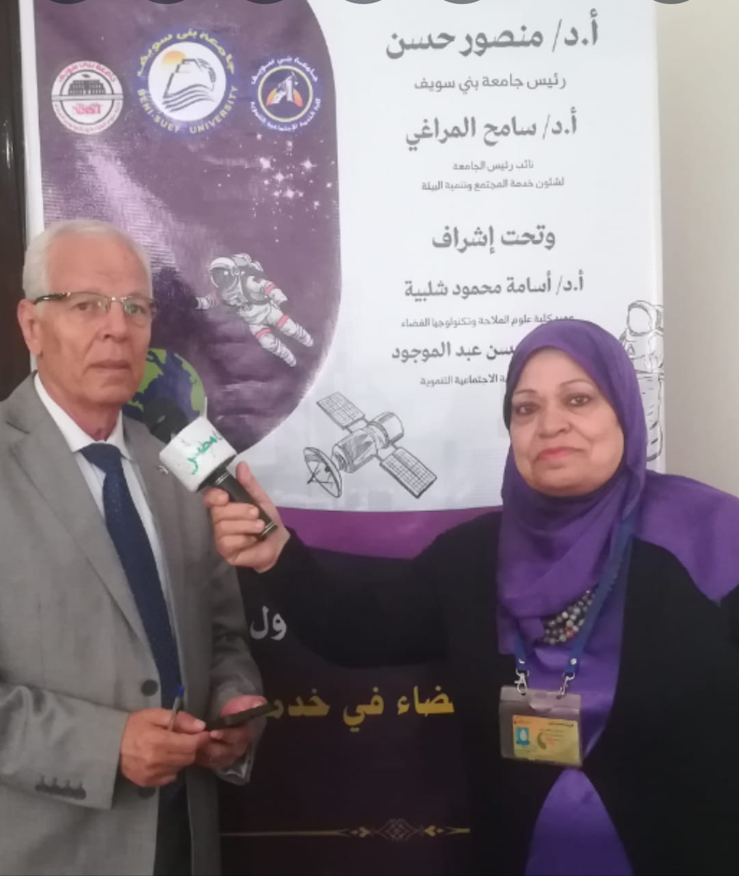 تحت رئاسة معالي الوزير ا.د منصور حسن رئيس جامعة بني سويف والاستاذ الدكتور سامح المراغي نائب رئيس الجامعة لشئون خدمة المجتمع وتنمية البيئة ومعالي الاستاذ الدكتور ابو الحسن عبد الموجود عميد كلية الخدمة الاجتماعية التنموية والاستاذ الدكتور اسامة محمود شلبية عميد كلية علوم الملاحة وتكنولوجيا الفضاء