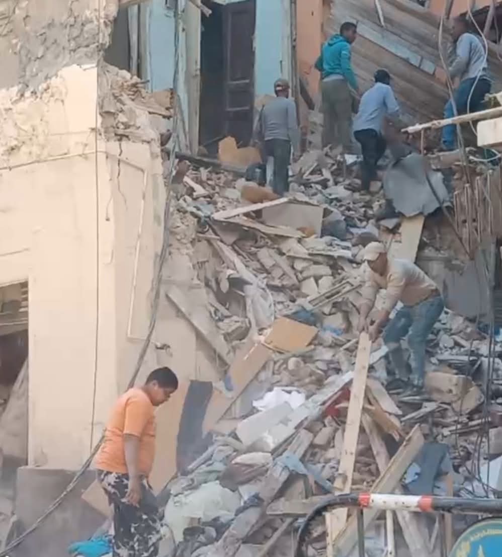 بعد انهيار جزئي للسقف و الإنهيار الداخلي الكامل لسلم عقار شارع النيل بمنطقة كرموز التابعة لحي غرب الإسكندرية ..قوات الحماية المدنية بمساعدة معدات هيئة الإسعاف ..تنجح في إنقاذ ثلاث مصابين ( مُسنة وطفلين )
