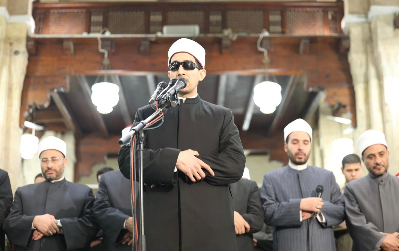 وأمَّ المصلين في صلاة العشاء الشيخ سمير زيدان، قارئًا برواية حفص عن عاصم من سورة الزمر، فيما أمَّ المصلين في صلاة التراويح الشيخ محمد عبدالنبي جادو، برواية إسحاق عن خلف العاشر، من سورة الزمر، وشاركه في الإمامة الشيخ محمد علاء الدين، برواية أبوالحارث عن الكسائي الكوفي، من سورة غافر، وشاركهما الدكتور محمود عزازي، برواية رويس عن يعقوب الحضرمي، من سورة غافر، فيما صلى الشفع والوتر الشيخ محمد عبدالجواد، في مشهد يعكس عناية الأزهر الشريف بإحياء سنة القراءات القرآنية المتواترة وإتاحة الفرصة للقراء الشباب للمشاركة في إمامة المصلين .