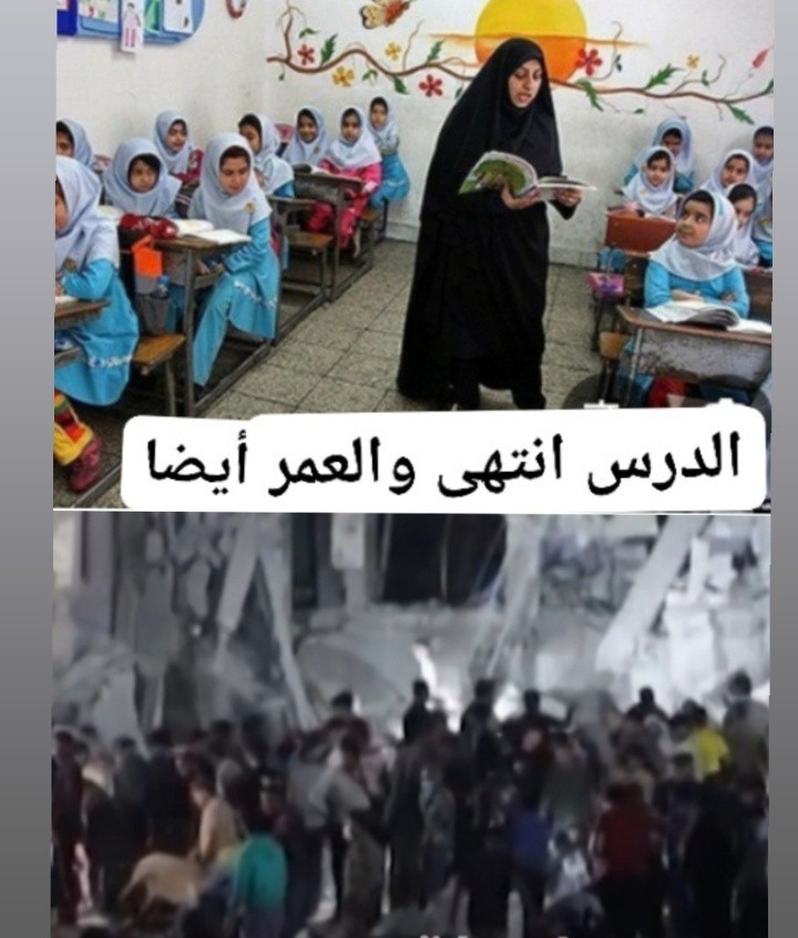 ..من طبيعة المجرمين النتن وترامب القتل دون حساب وبضمير ميت وفى الهجوم الأول، قصفت القوات الأمريكية مدرسة بنات ابتدائية فى جنوب غرب إيران، أعمارهن بين5-11 سنة، بثلاثة صواريخ فتاكة متتالية، والأطفال آمنين فى فصولهن الدراسية، وأطاح بأعمار 148شهيدة،