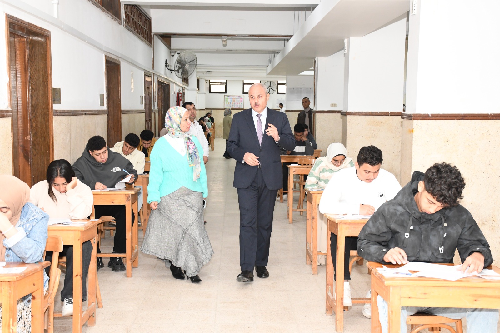 وتضمنت الجولة أيضًا متابعة امتحان مادة علاج تحفظي 2 لطلاب المستوى الثالث لائحة الساعات المعتمدة، والذي انعقد في تمام الساعة الثانية عشرة والنصف ظهرًا، بحضور 68 طالبًا دون تسجيل أي حالات غياب، حيث اطلع رئيس الجامعة على مستوى التنظيم داخل اللجان وطبيعة الأسئلة.