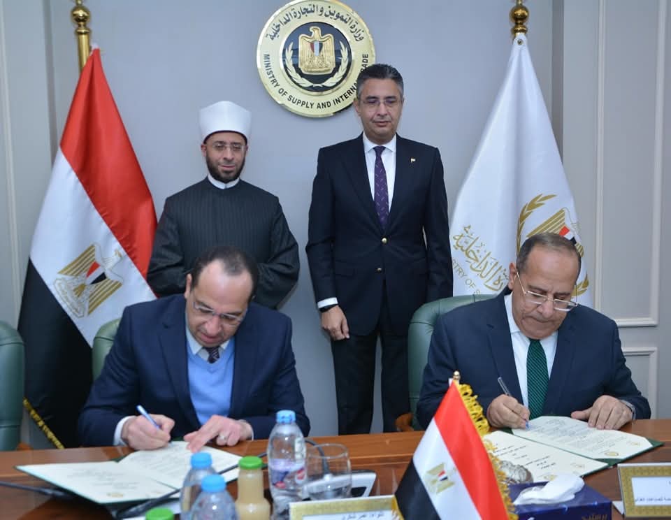 توقيع بروتوكول تعاون بين وزارة التموين والتجارة الداخلية ووزارة الأوقاف لتوريد السلع الأساسية.