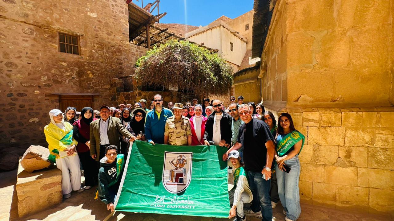نظّمت جامعة القاهرة تحت رعاية الاستاذ الدكتور محمد سامي عبد الصادق، رئيس الجامعة، زيارة ميدانية لوفد من طلاب أسرة “من أجل مصر” إلى أرض سيناء لمدة أربعة أيام بالتعاون مع إدارتي التربية العسكرية والتربية الوطنية وقوات الدفاع الشعبي والعسكري، وذلك تنفيذًا لتوجيهات فخامة السيد عبد الفتاح السيسي، رئيس الجمهورية، بزيارة طلاب الجامعات المصرية إلى سيناء للتعرف على المشروعات القومية .