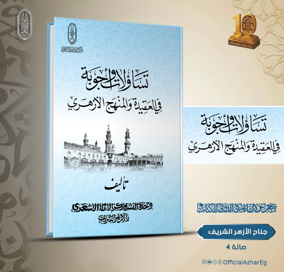 يقدِّم جناح الأزهر الشريف بمعرض القاهرة الدولي للكتاب، في دورته الـ 57، لزوَّاره كتاب: “تساؤلات وأجوبة في العقيدة والمنهج الأزهري”، من إصدارات مركز الإمام الأشعري بالأزهر .
