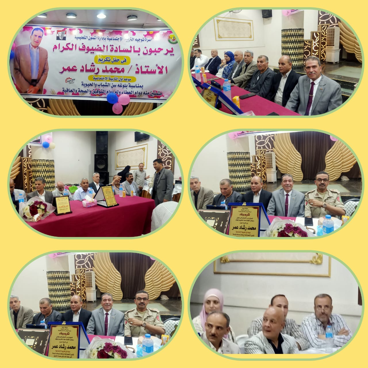 أقيمت اليوم الخميس حفلة تكريم للأستاذ محمد رشاد عمر موجه أول التربية الاجتماعية بإدارة أشمون التعليمية لبلوغ سن المعاش والحيوية وقد حضر الحفل د.حسن الخولي رئيس مجلس الأمناء والأباء لمحافظة المنوفية و أ. هاني أمين وكيل إدارة أشمون التعليمية وأ .طه شرف نقيب المعلمين بإدارة أشمون التعليمية وأ.علاء حسيب مدير التعليم الابتدائي وأ. رجب خليل مدير التعليم الثانوي وأ. علي أبو الخير عضو مجلس الأمناء والأباء بأشمون وعماد خضر الممثل القانوني مدارس طيبة الخاصة وأ. السيد الشرقاوي رئيس مؤسسة الأدهم الخيرية بمركز أشمون وأ.أميرة لطفي زيدان مدير العلاقات العامة بإدارة أشمون التعليمية وأ. ممدوح عبده ممثل حزب مستقبل وطن وأ. خيري محراث أمين صندوق مجلس الأمناء والأباء بأشمون وأ. صلاح زيد رئيس قسم الاتحادات الطلابية بأشمون ود. رمضان العطار الرائد العام المثالي على مستوى الجمهورية ولفيف من المعلمين والمعلمات والأخصائيين الاجتماعيين بإدارة أشمون التعليمية وقد تحدث الجميع عن إنجازات التربية الاجتماعية بإدارة أشمون التعليمية التي قفز بالإدارة إلى مراكز الأولى على مستوى الجمهورية