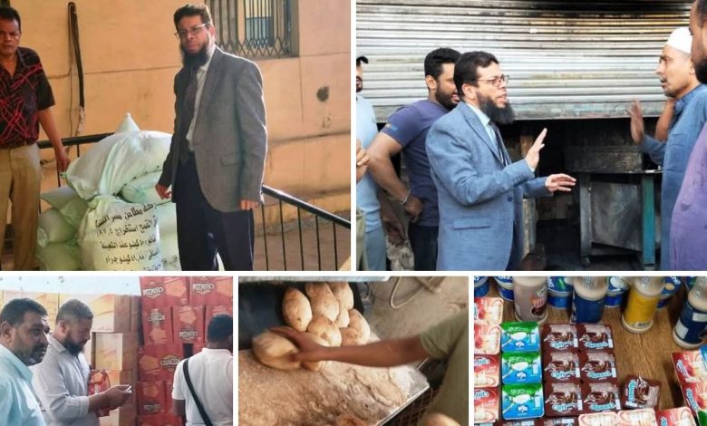 بالمديرية والإدارات الفرعية المكلفة بالرقابة على المخابز بالتنسيق مع رؤساء المراكز والمدن بالمرور الميدانى ، وتنفيذ العديد من الحملات التفتيشية حيث أسفرت الجهود عن تحرير 60 محضر متنوع تضمن 35 مخالفة متنوعة ضد المخابز البلدية من بينها 5 محاضر غلق لمخالفات متعددة ، فضلاً عن تحرير محاضر لتوقف عن الإنتاج رغم وجود رصيد وعدم وجود قائمة أسعار.