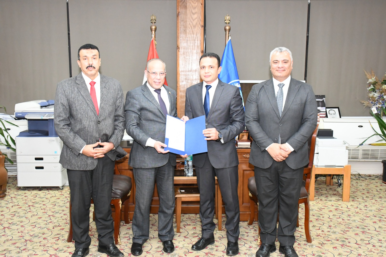 وفي هذا السياق، استقبل الدكتور محمد عبد النعيم، نائب رئيس الجامعة لشئون التعليم والطلاب، الدكتور محمد صلاح حرب لتسليمه قرار التكليف، وذلك بحضور الدكتور ماجد العزازي، عميد كلية علوم الرياضة، والدكتور أحمد كمال، منسق عام الأنشطة الطلابية، حيث أعرب عن ثقته في قدرة الدكتور محمد صلاح حرب على إحداث نقلة نوعية في ملف النشاط الرياضي بالجامعة، بما يمتلكه من خبرات علمية وميدانية واسعة.