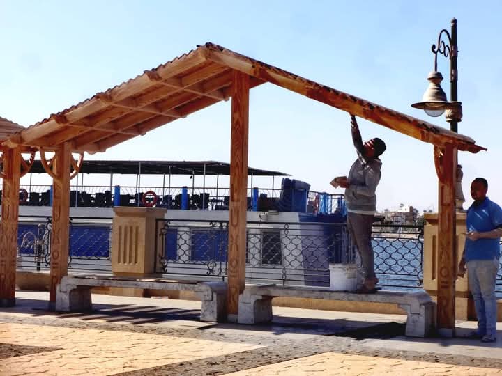 رئيس مدينة الأقصر يتابع أعمال صيانة “البرجولات” والمقاعد بكورنيش النيل بمدينة الأقصر