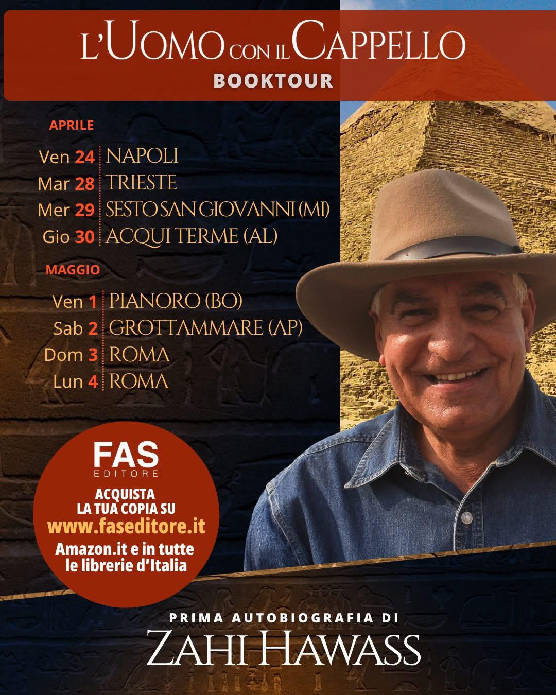 بدأ عالم الآثار المصري العالمي، الدكتور زاهي حواس ، أضخم جولة محاضرات ثقافية وأثرية في تاريخ العلاقات المصرية الإيطالية، تشمل 10 مدن إيطالية، تهدف إلى الترويج للحضارة المصرية وحشد رأي عام دولي لاستعادة القطع الأثرية المنهوبة.