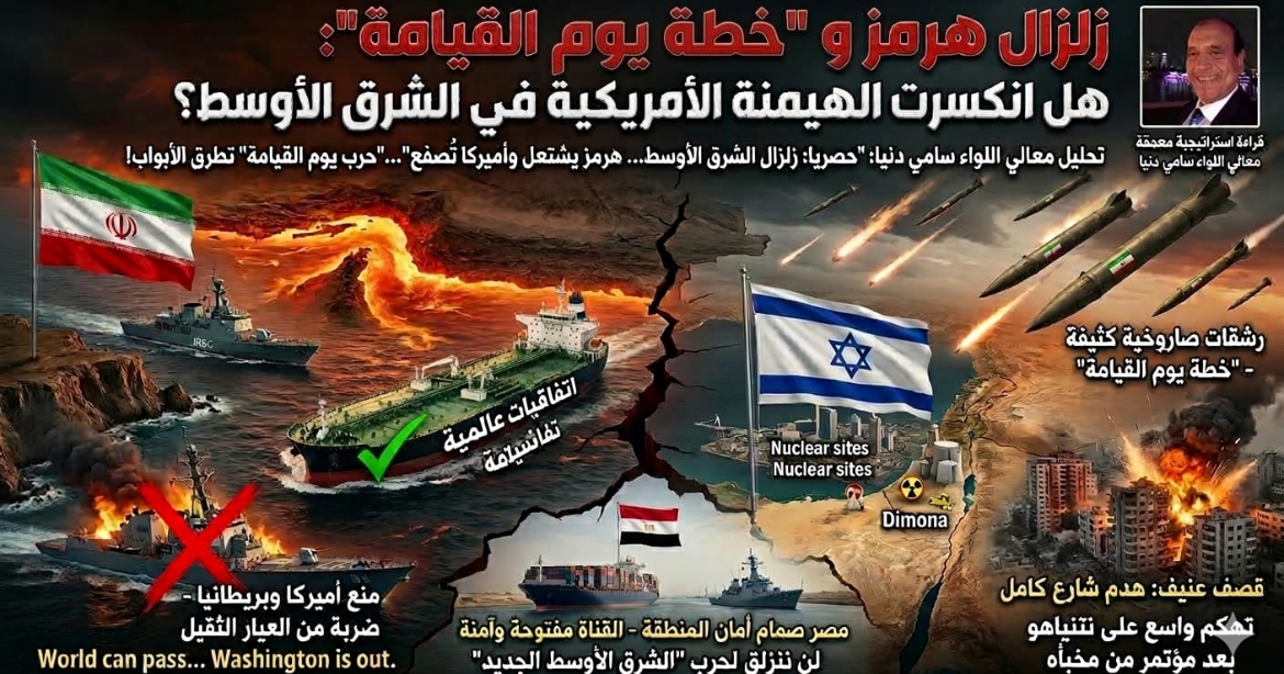 في قراءة استراتيجية معمقة للمشهد المتفجر الذي يشهده الشرق الأوسط حالياً، وتحت عنوان “حصرياً: زلزال الشرق الأوسط”، يستعرض معالي اللواء سامي دنيا تفاصيل الصراع المحتدم الذي يصفه بأن “هرمز يشتعل وأميركا تُصفع”، حيث تفتح إيران الممر للعالم وتغلقه في وجه واشنطن ولندن، معلناً أن حرب “يوم القيامة” باتت تطرق الأبواب. هذا التحليل العسكري الرصين يكشف عن تحول جذري في موازين القوى، حيث بدأت طهران فعلياً بتنفيذ اتفاقات دولية لعبور المضيق مستثنيةً السفن التابعة أو المرتبطة بالولايات المتحدة وإسرائيل، وهي خطوة اعتبرها اللواء ضربة من العيار الثقيل للهيمنة الأمريكية، ورسالة واضحة بأن العالم يمكنه العبور لكن واشنطن وحلفاءها باتوا “خارج اللعبة”.