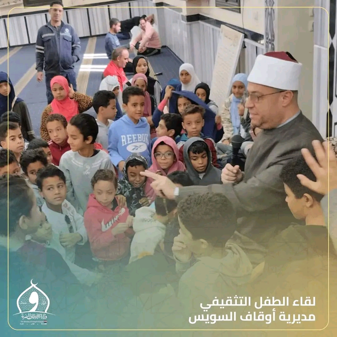 نظمت مديرية أوقاف السويس لقاء الطفل وذلك في إطار جهود وزارة الأوقاف للاهتمام بالنشء وتعميق الوعي الديني والثقافي لديهم، تم اليوم الجمعة 12 ديسمبر 2025م عقد “لقاء الطفل” مباشرة عقب صلاة الجمعة.