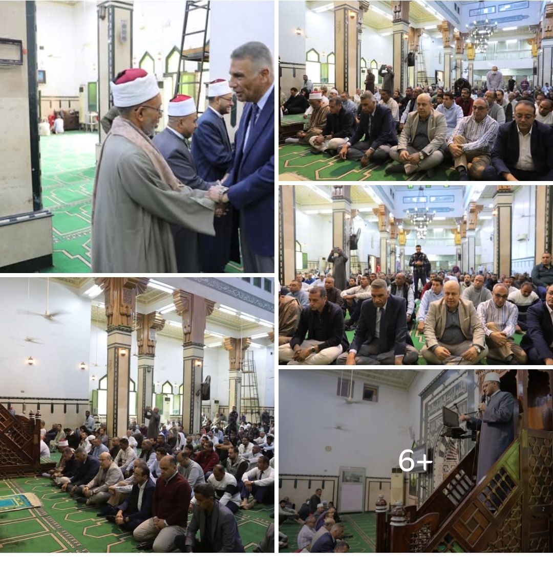 ، وعدد من القيادات الأكاديمية والدينية والتنفيذية بالمحافظة ، إلى جانب الدكتور محمد حازم وكيل وزارة الأوقاف ، والذى ألقى خطبة الجمعة ، والتى جاءت تحت عنوان ” المهن فى الإسلام طريق العمران والإيمان معاً ” ، حيث تناولت أهمية العمل والإتقان ودورهما فى بناء المجتمع وترسيخ القيم الدينية والإنسانية.