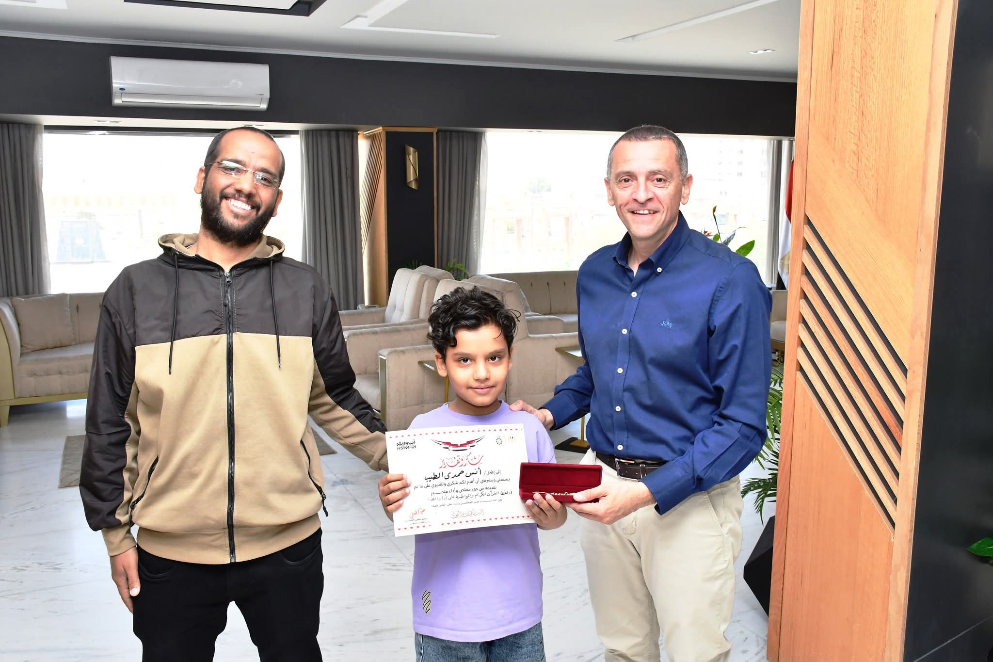 – وأشاد المحافظ بتميز الطفل أنس حمدى الطيب ، معتبره نموذجاً مشرفاً يحتذى به بين أقرانه ، ومصدر فخر لأسرته ولمجتمعه .