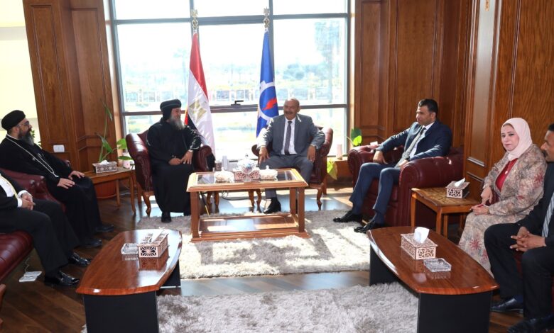 محافظ السويس يستقبل رئيس المنطقة الجغرافية وأسقف محافظة السويس ورئيس مدينة السويس