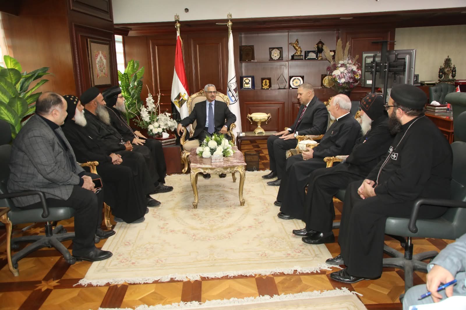 محافظ بني سويف يتلقى التهاني بثقة القيادة السياسية وشهر رمضان الكريم من قيادات وممثلي الطوائف والمذاهب الكنسية بالمحافظة