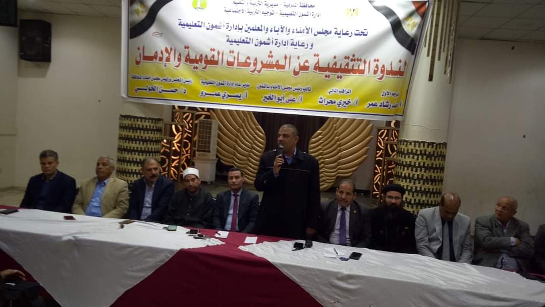 ندوة تثقيفية عن المشروعات القومية ومكافحة الإدمان تحت رعاية مجلس الآباء والأمناء والمعلمين وإدارة أشمون التعليمية