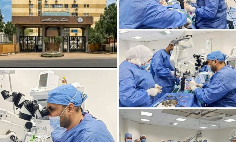 التخدير، وبمعاونة فريق التمريض المتميز، وذلك تحت إشراف ومتابعة الدكتور أبو المجد أبو الوفا محمود، مدير المستشفى، والدكتور محمد عبد الهادي، مدير فرع الهيئة العامة للرعاية الصحية بأسوان.