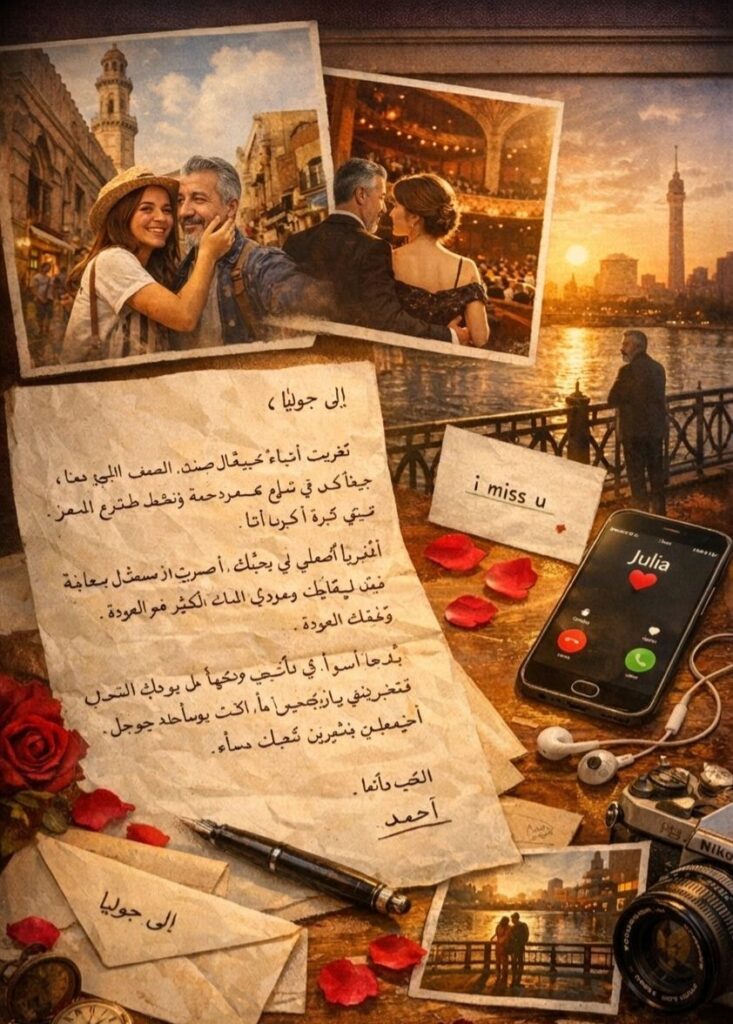تغيرت أشياءٌ كثيرة منذ الصيف الماضي، حينما كنتِ هنا، تركضين في شوارع القاهرة المزدحمة، وتجعلينني ألتقط لكِ الصور في شارع المعز. أشياءٌ كثيرة تغيرت، أكبرها أنا… لقد تغيرت يا جولي الصغيرة، وصرت حزينًا كفاية لألتقط كل المشاعر الملقاة في الطرقات بعد رحيلك.