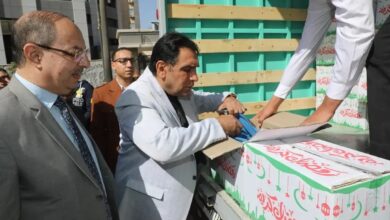 أشرف اللواء أحمد جمال الدين السكرتير العام المساعد لمحافظة بني سويف، اليوم، على استلام قافلة مساعدات الغذائية المقدمة من مؤسسة